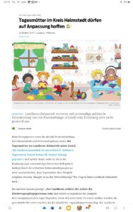 Unsere Regionalgruppe Helmstedt setzt sich für bessere Rahmenbedingungen in der Kindertagespflege ein. Die Sachkostenpauschale, die der Landkreis zahlt, deckt nicht mehr die Kosten.