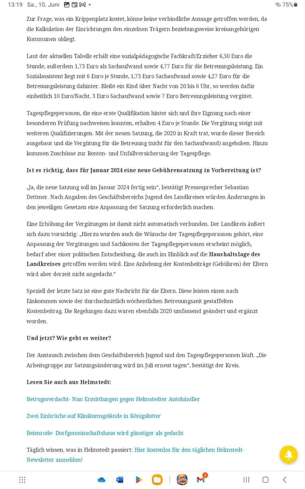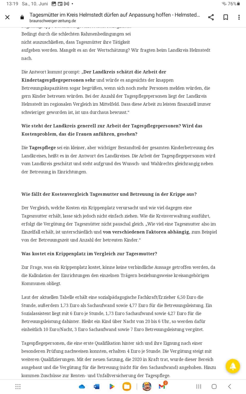 Unsere Regionalgruppe Helmstedt setzt sich für bessere Rahmenbedingungen in der Kindertagespflege ein. Die Sachkostenpauschale, die der Landkreis zahlt, deckt nicht mehr die Kosten.
